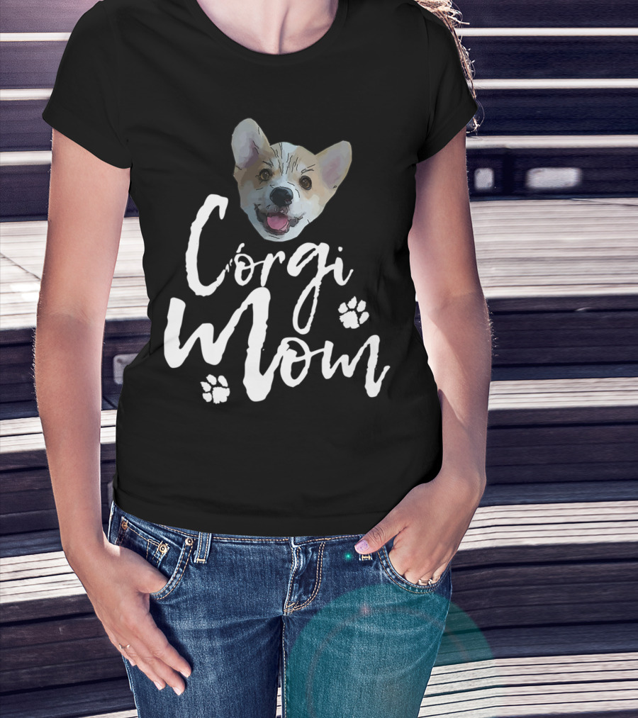 Corgi Mom Cute Dog Face With Paw Print Accents T-Shirt