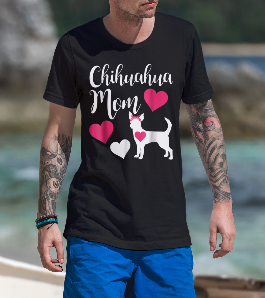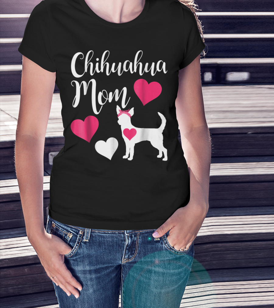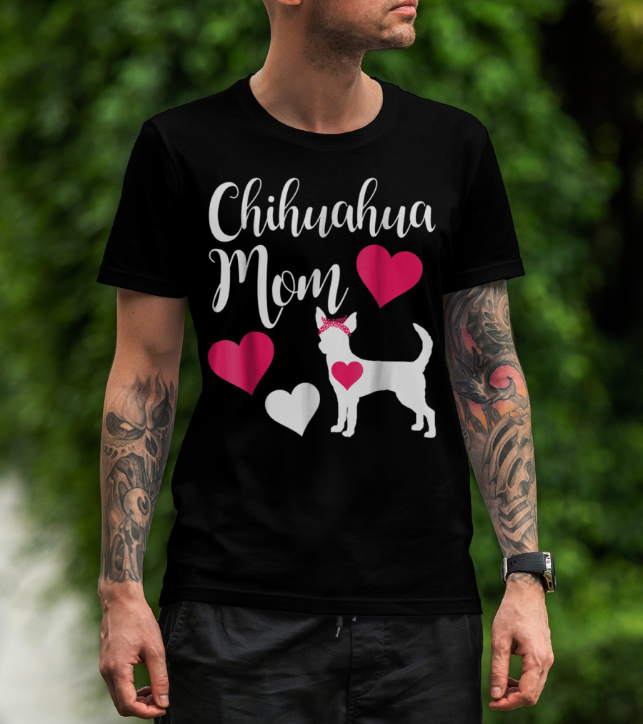 Chihuahua Mom Heart Love Bow Chihuahua Owner T-Shirt
