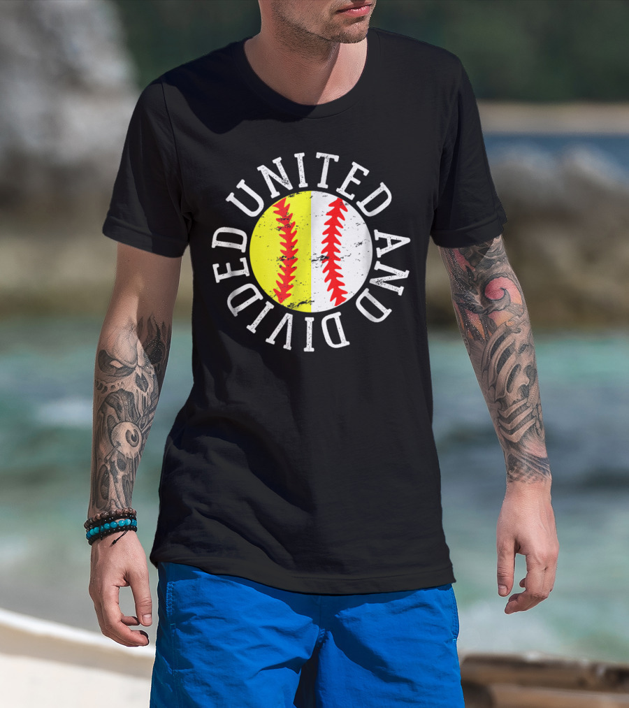 Softball Baseball United And Divided Cool Cute Son Daughter T-Shirt