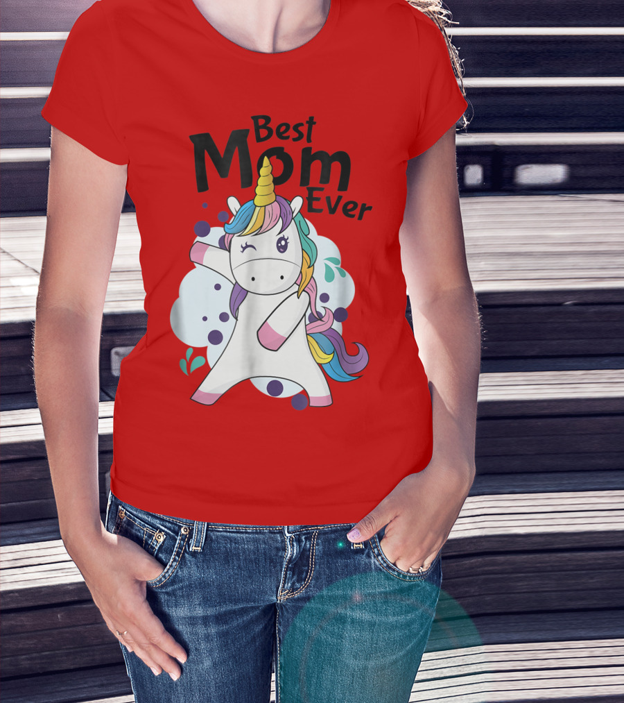 Best Mom Ever Cute Rainbow Unicorn Birthday T-Shirt