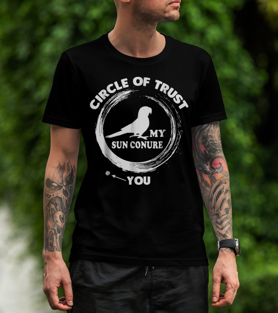 The Circle of Trust My Sun Conure You T-shirt is designed for everyday wear and a consistent fit. Fabric is pre-shrunk ring-spun cotton with durable stitching. See the size chart below for exact measurements.