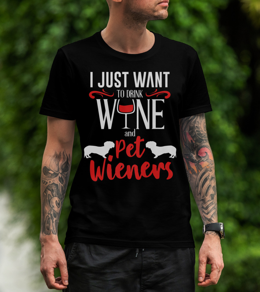 I Just Want To Drink Wine And Pet Wieners Dachshund Wiener Dog Wine Lover Dog Doxie T-Shirt