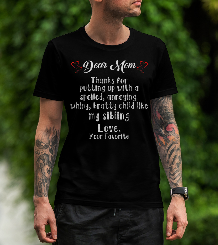 Dear Mom Thanks For Putting Up With A Spoiled Annoying Whiny Bratty Child Like My Sibling Love Your Favorite T-Shirt