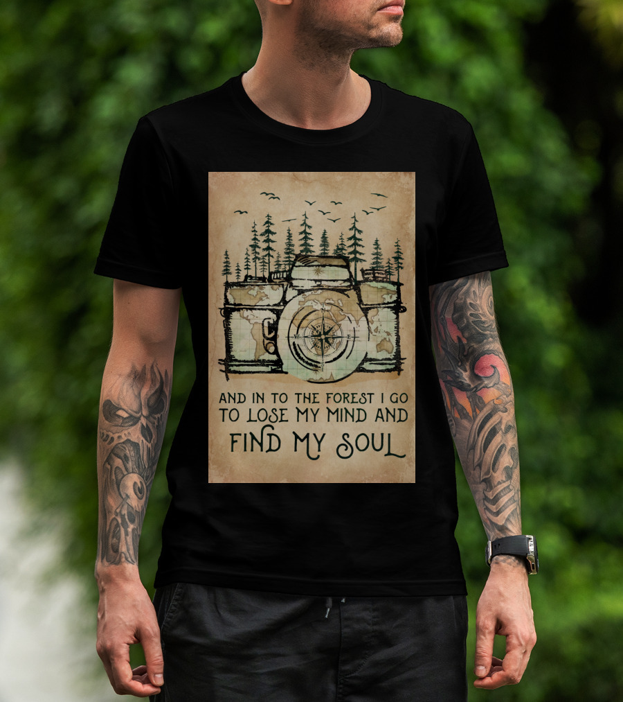 And In To The Forest I Go To Lose My Mind And Find My Soul Camera Compass Forest T-Shirt