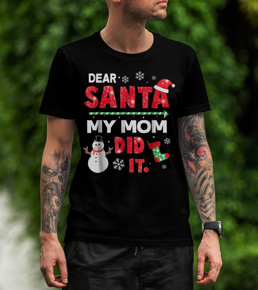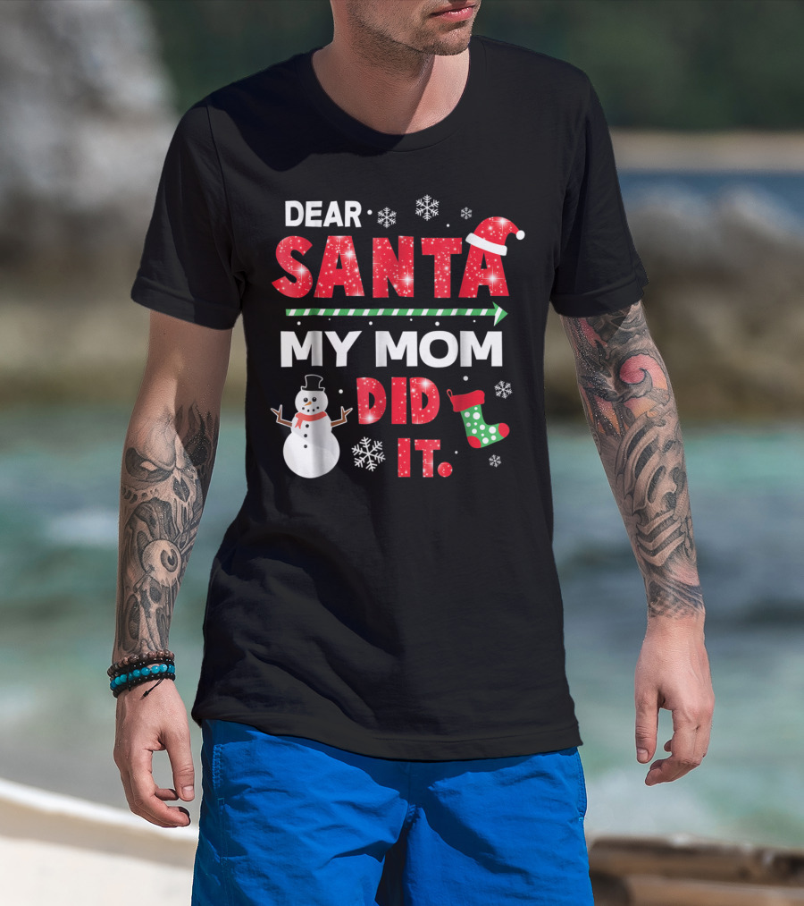 Dear Santa My Mom Did It Christmas Snowman Stocking Snowflake T-Shirt
