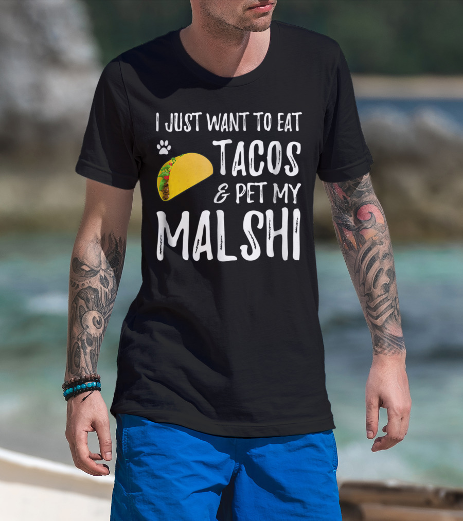 I Just Want To Eat Tacos And Pet My Malshi Dog Lover Cinco De Mayo T-Shirt