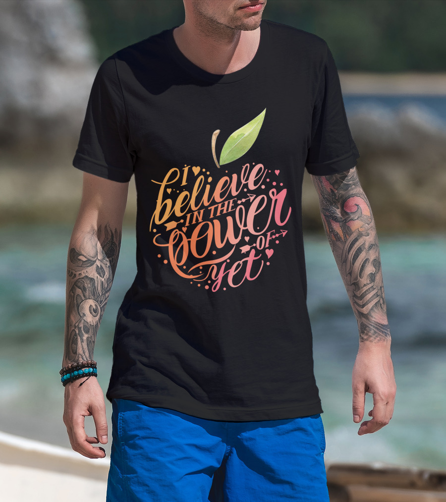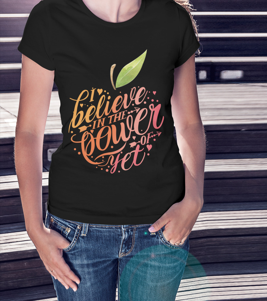 I Believe In The Power Of Yet Apple Typography With Heart Accents T-Shirt