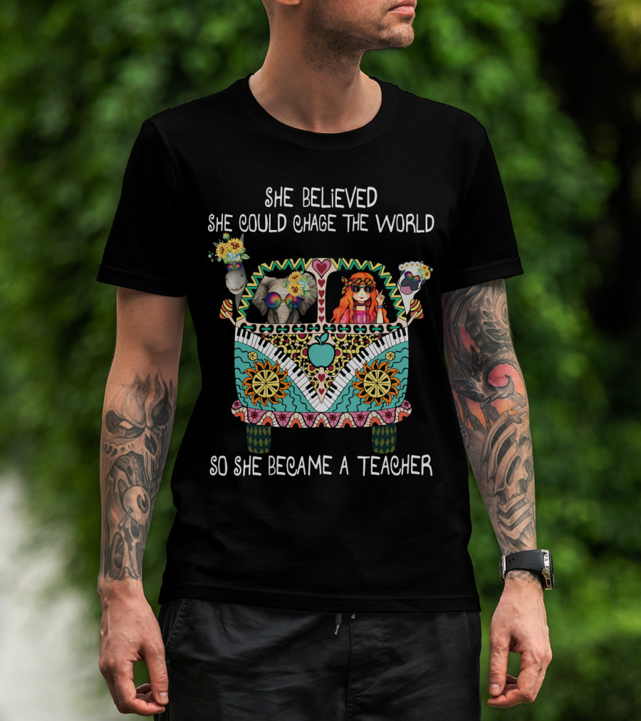 She Believed She Could Change The World So She Became A Teacher Psychedelic Van T-Shirt