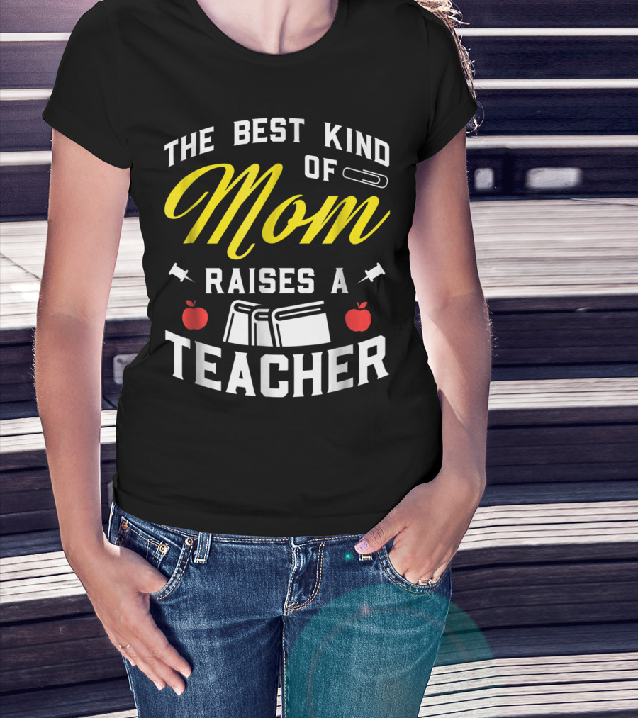The Best Kind Of Mom Raises A Teacher With Books And Apples T-Shirt