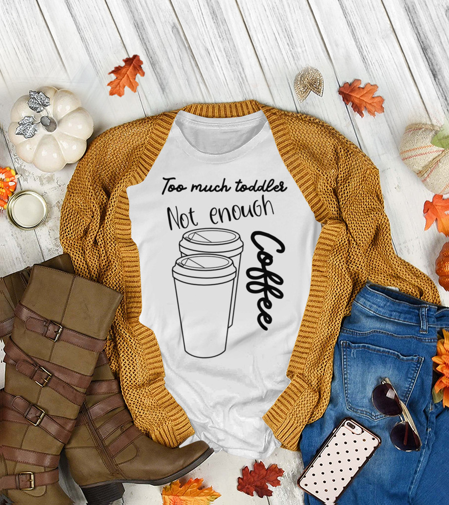 The Too Much Toddler Not Enough Coffee Mom Mommy Joke SAHM Double Coffee Cups T-shirt is designed for everyday wear and a consistent fit. Fabric is pre-shrunk ring-spun cotton with durable stitching. See the size chart below for exact measurements.