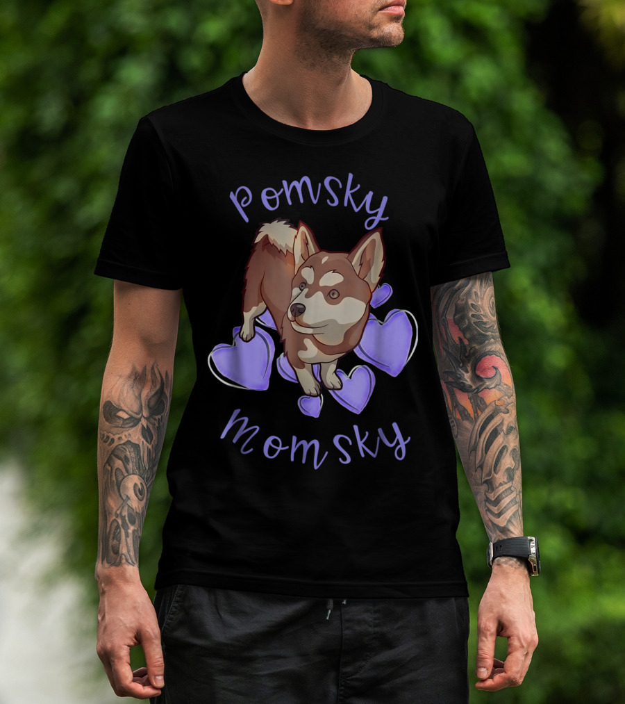 Pomsky Momsky Cute Pomsky With Purple Hearts T-Shirt