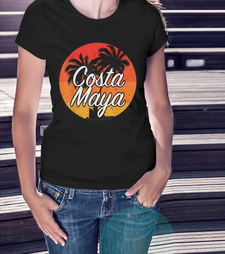 Costa Maya Mexico Vintage Sunset Palm Trees T-Shirt