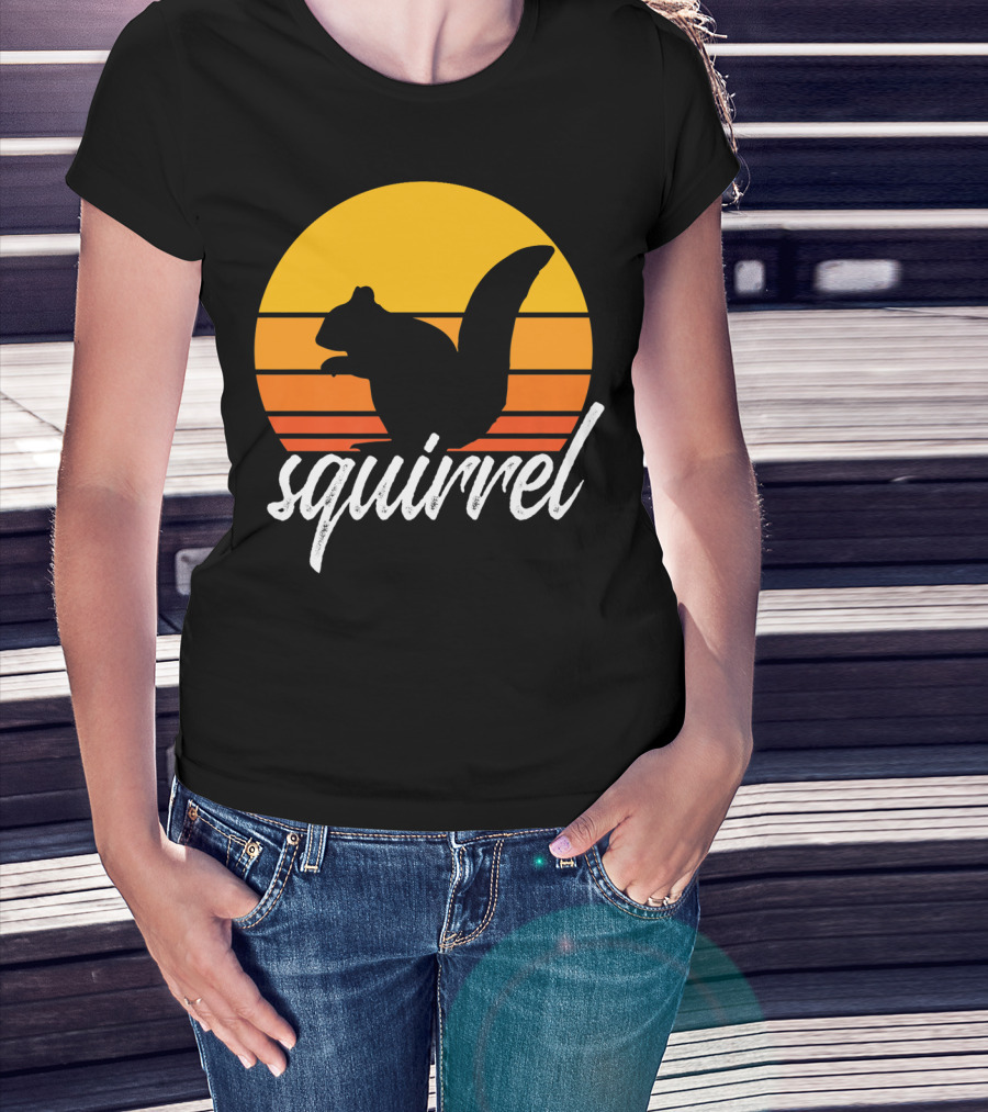 Squirrel Silhouette Against Sunset Vintage Animal Lover T-Shirt