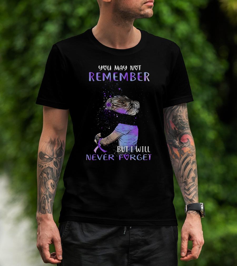 Alzheimer Awareness You May Not Remember But I Will Never Forget Purple T-Shirt
