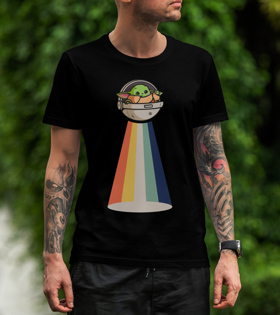 Baby Yoda Spaceship Rainbow Glow T-Shirt