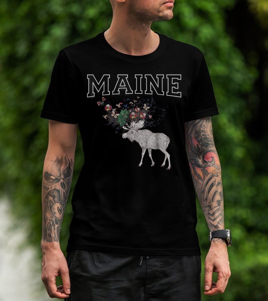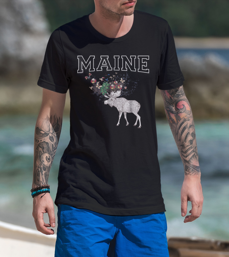 Maine Moose With Floral Antlers T-Shirt