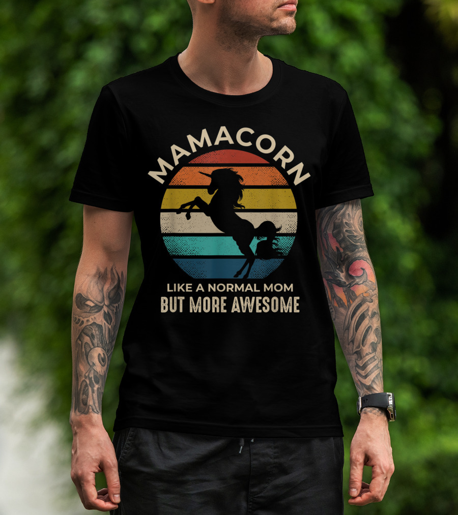 Mamacorn Like A Normal Mom But More Awesome Unicorn Retro Sunset T-Shirt