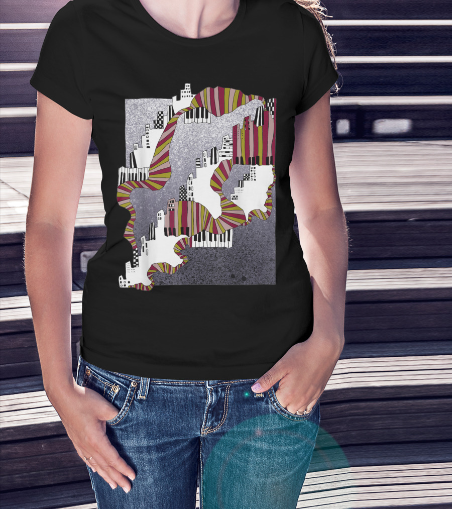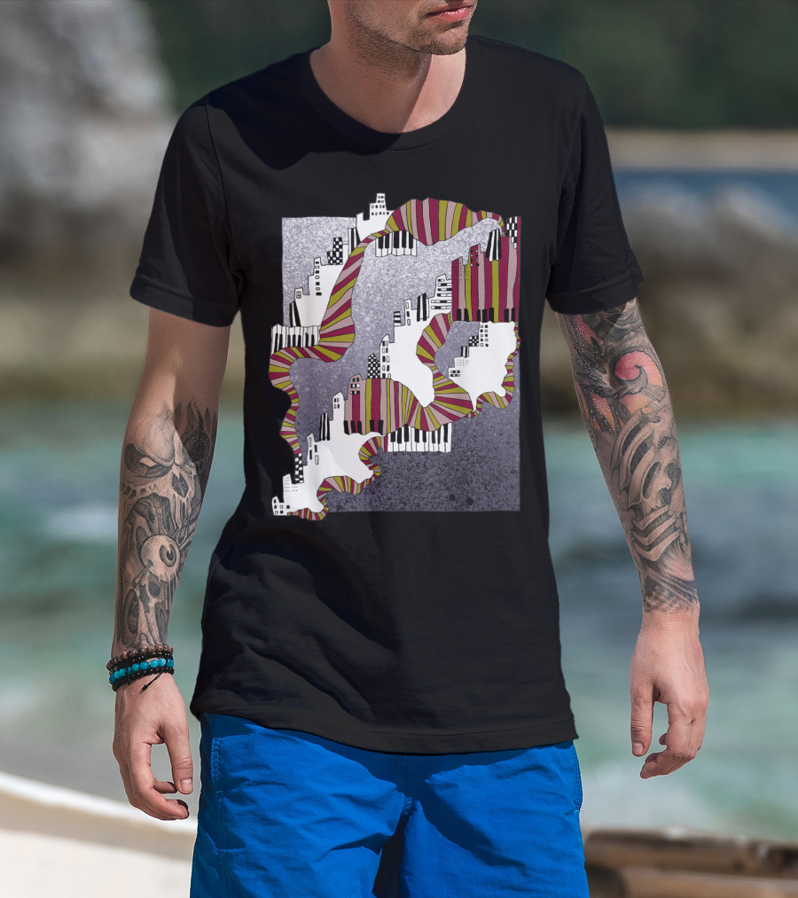 Mellow My Man Cityscape With 90s Hip Hop Piano Keys And Vibrant Stripes T-Shirt