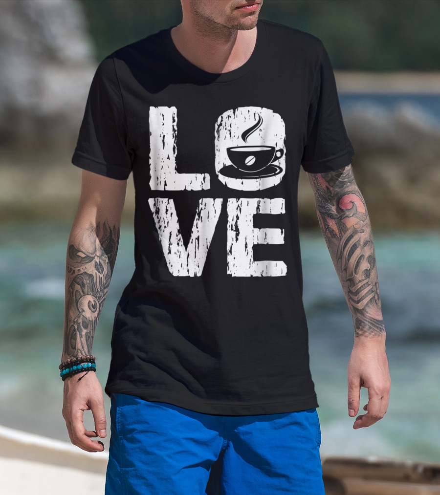 The Love Coffee Funny Caffeine Lover T-shirt is designed for everyday wear and a consistent fit. Fabric is pre-shrunk ring-spun cotton with durable stitching. See the size chart below for exact measurements.