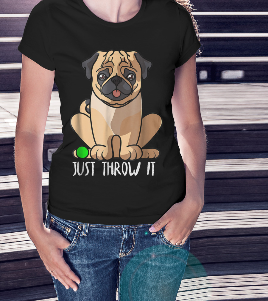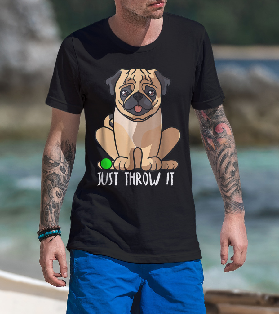 Just Throw It Pug Cute Dog Owner Playful Pet Fun T-Shirt