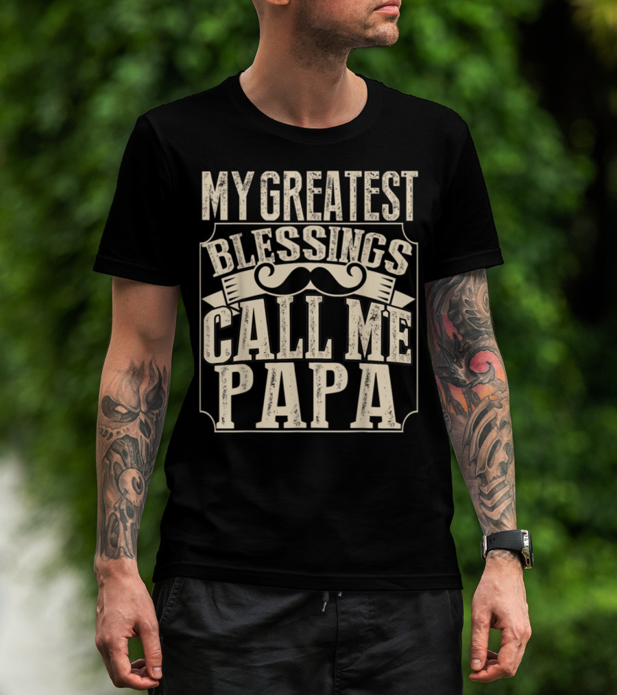 My Greatest Blessings Call Me Papa Vintage Mustache T-Shirt
