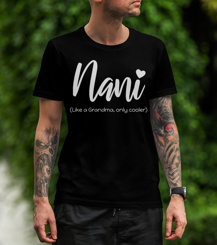 The Nani Like A Grandma Only Cooler Heart Gesture T-shirt is designed for everyday wear and a consistent fit. Fabric is pre-shrunk ring-spun cotton with durable stitching. See the size chart below for exact measurements.