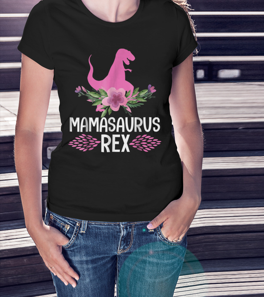 Mamasaurus Rex Cute Mom Dinosaur Pink Floral T-Shirt