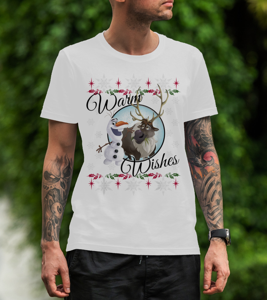 Disney Frozen Olaf Sven Warm Wishes Snowflakes Holiday Scene T-Shirt