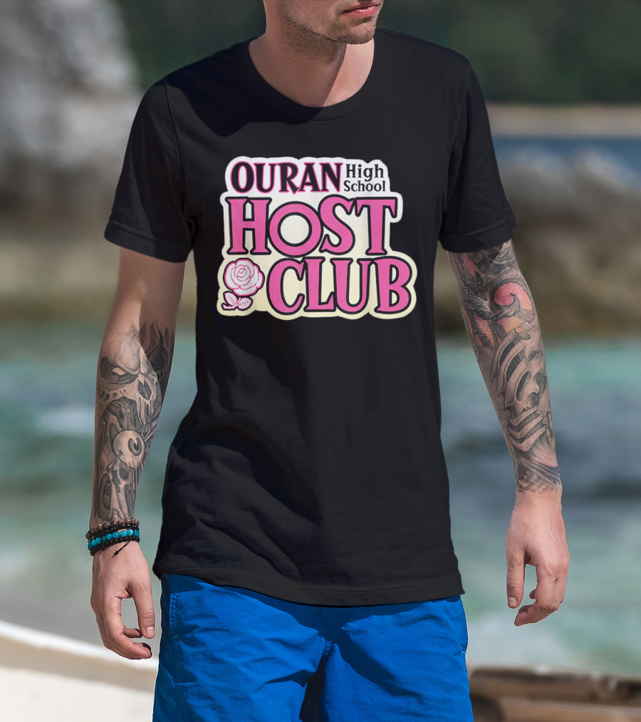Ouran High School Host Club Anime Series Logo With Rose T-Shirt