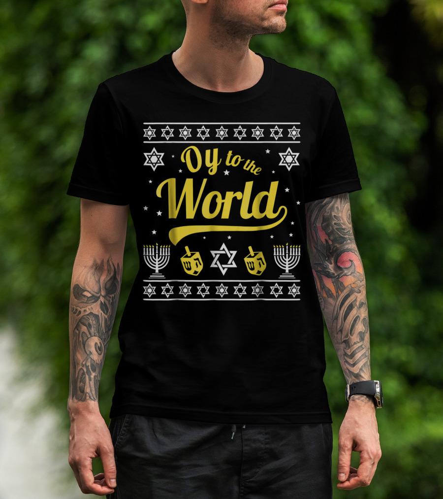 Oy To The World Hanukkah Menorah Star Dreidel T-Shirt