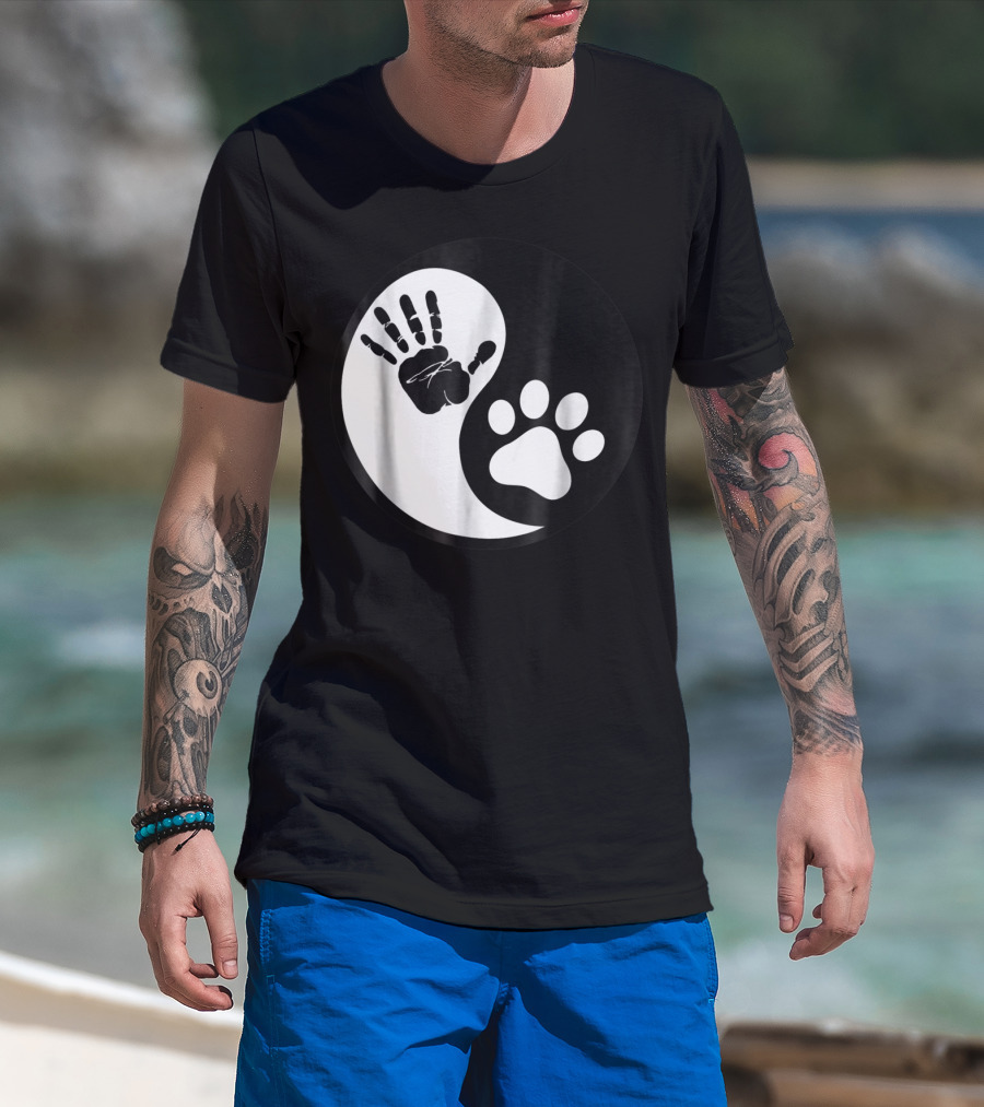Yin Yang Pet Paw Print Hand Friends T-Shirt