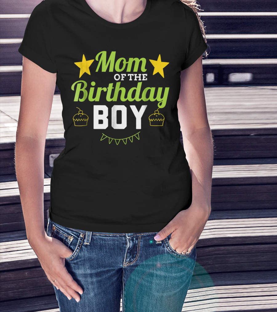 Mom Of The Birthday Boy Stars Cupcakes Party T-Shirt