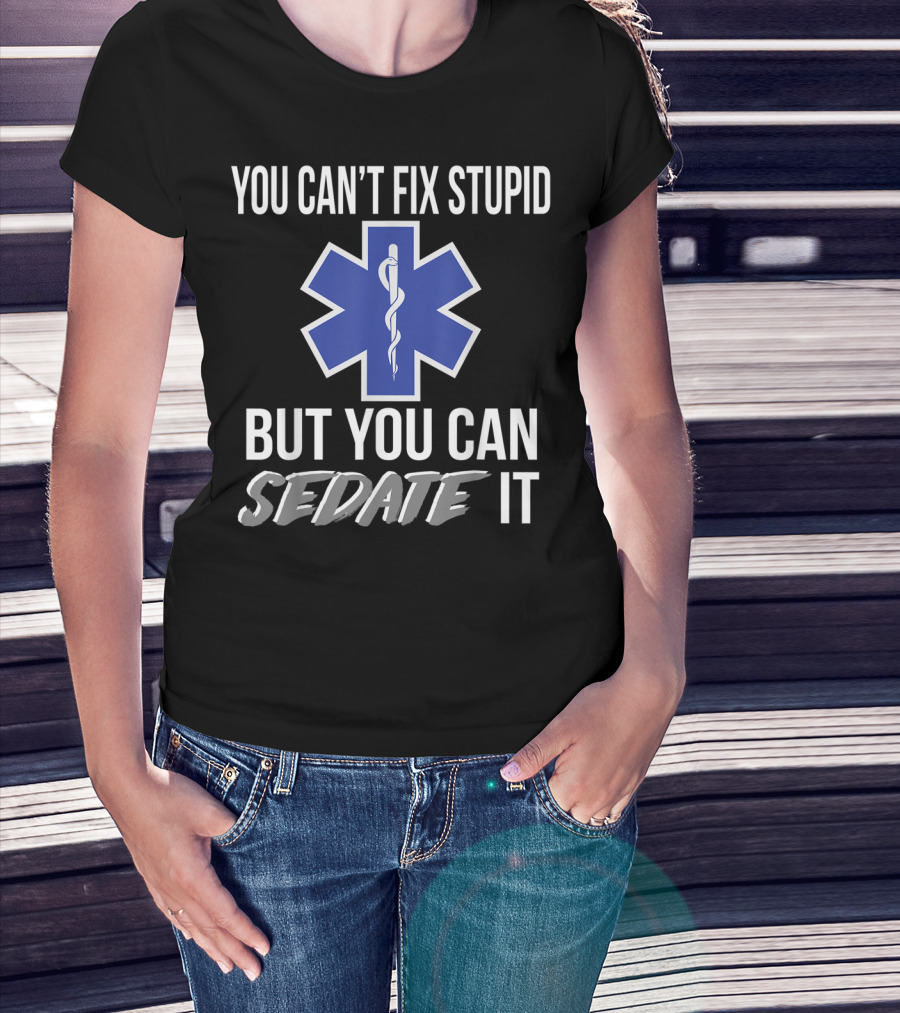 You Can't Fix Stupid But You Can Sedate It EMS Star Of Life T-Shirt