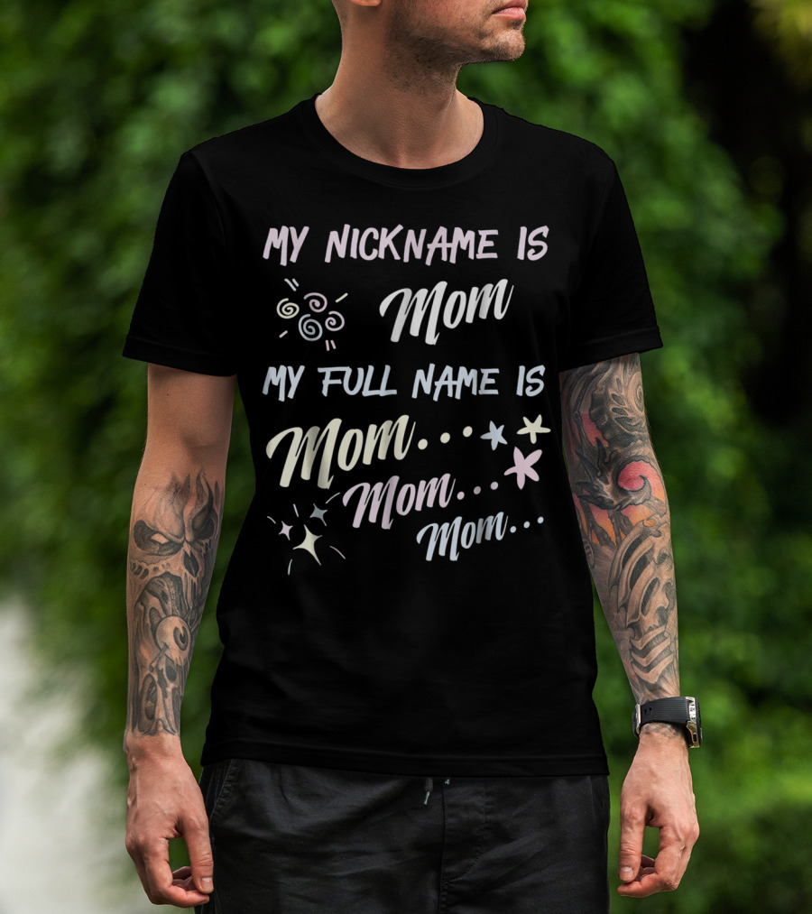 My Nickname Is Mom My Full Name Is Mom Mom Mom Swirls Stars T-Shirt