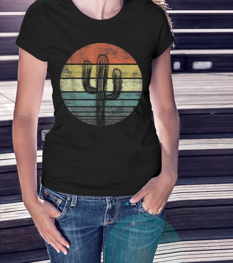 The Retro Saguaro Cactus Sunset Stripes Cactaceae Vintage Vibes T-shirt is designed for everyday wear and a consistent fit. Fabric is pre-shrunk ring-spun cotton with durable stitching. See the size chart below for exact measurements.