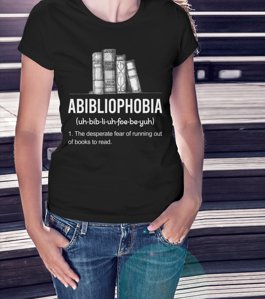 Abibliophobia Funny Book Lover Running Out Library Fear T-Shirt
