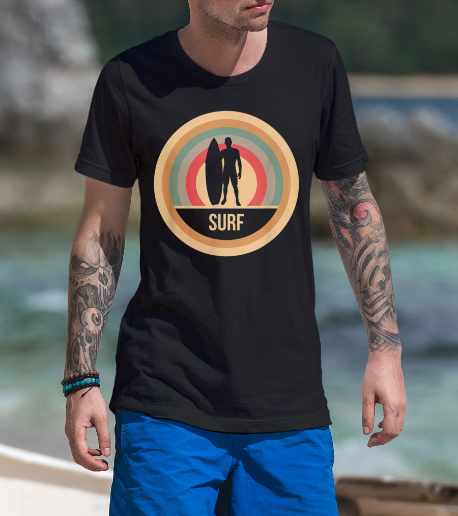 The Surf Retro Vintage Surfers Rainbow Circle T-shirt is designed for everyday wear and a consistent fit. Fabric is pre-shrunk ring-spun cotton with durable stitching. See the size chart below for exact measurements.