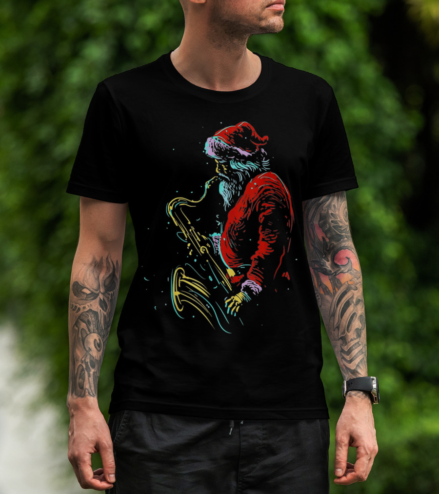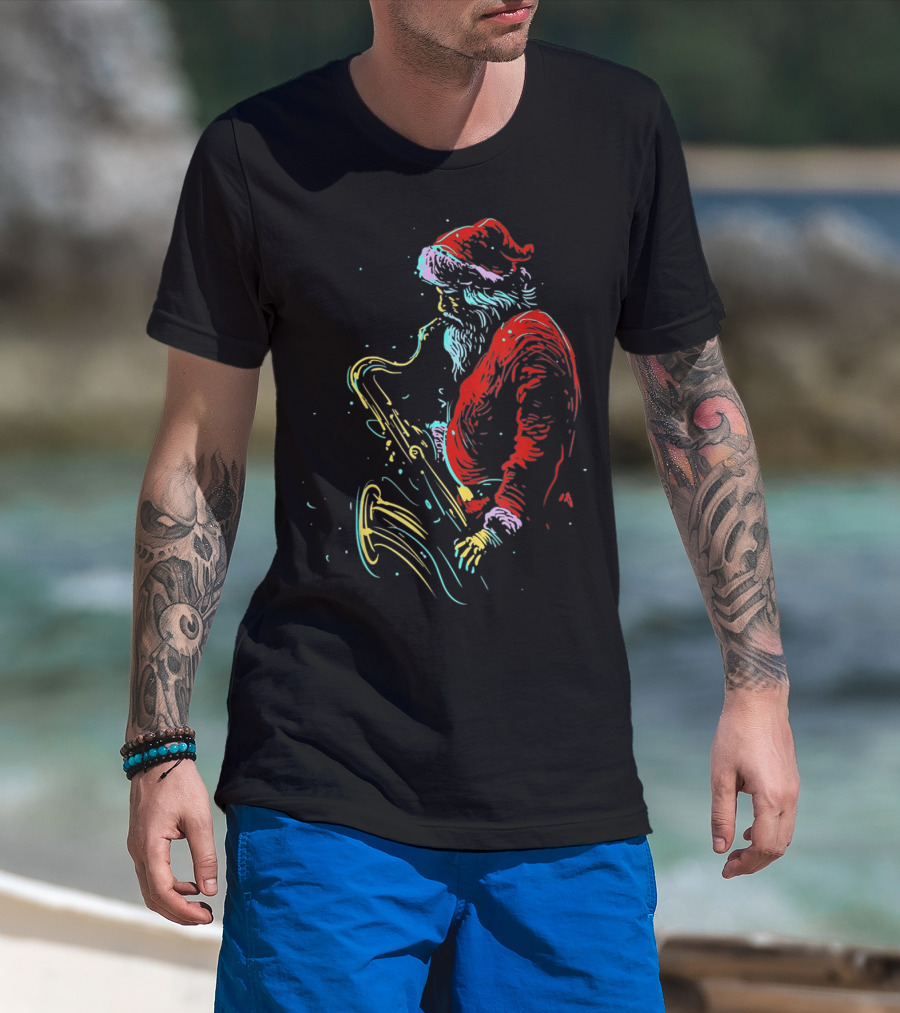 Santa Claus Playing Saxophone Musical Holiday Serenade T-Shirt