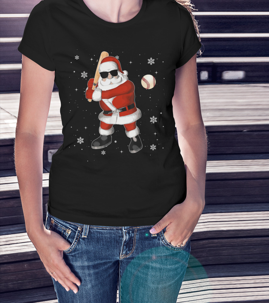 Santa Baseball Snowflake Batting Holiday T-Shirt