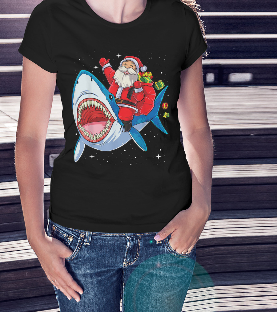 How much will this Santa and Presents on Shark in Starry Christmas Galaxy shirt shrink?