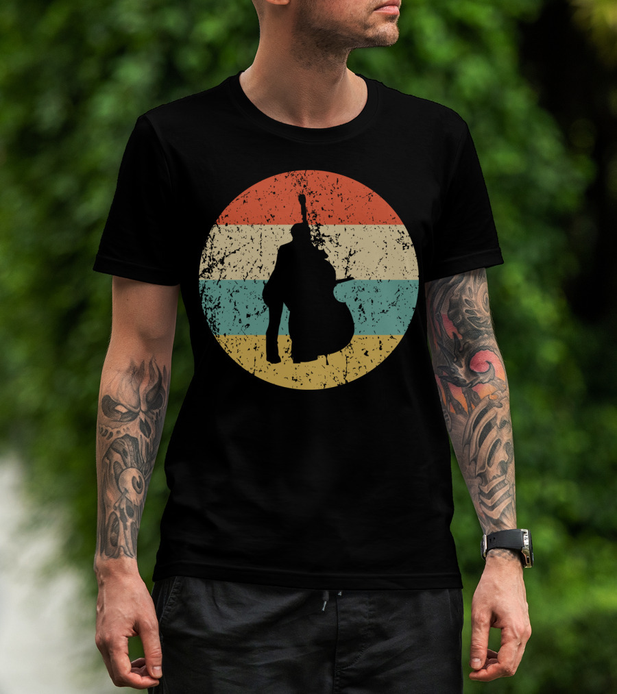 The Vintage Stand Up Bass Retro Sunset Music T-shirt is designed for everyday wear and a consistent fit. Fabric is pre-shrunk ring-spun cotton with durable stitching. See the size chart below for exact measurements.