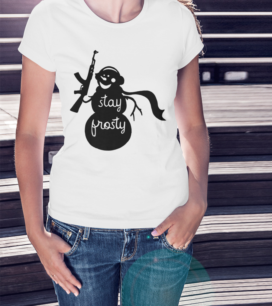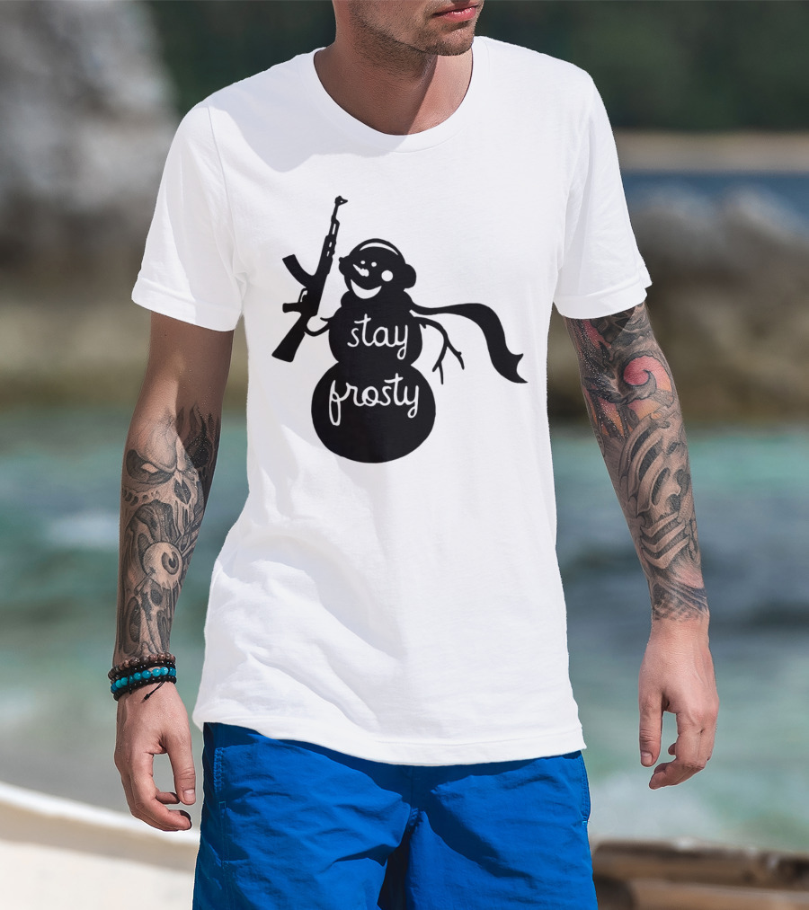 Stay Frosty Snowman With Headphones And Rifle T-Shirt