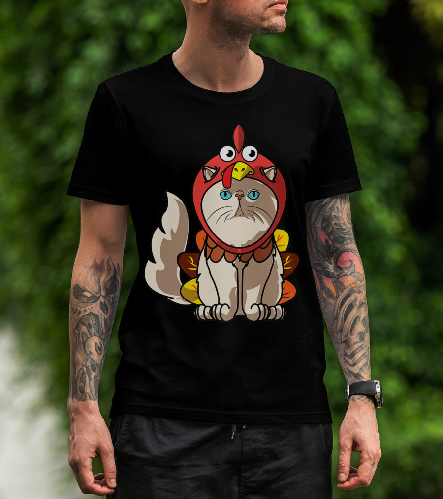 Thanksgiving Persian Mom Cat In Turkey Costume Greetings T-Shirt