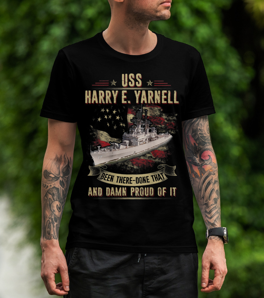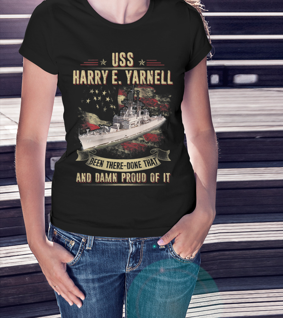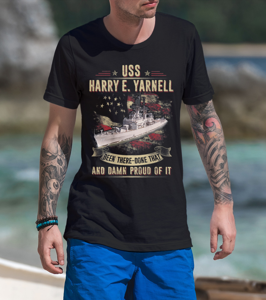 USS Harry E. Yarnell CG17 Been There Done That And Damn Proud Of It Flag Background T-Shirt