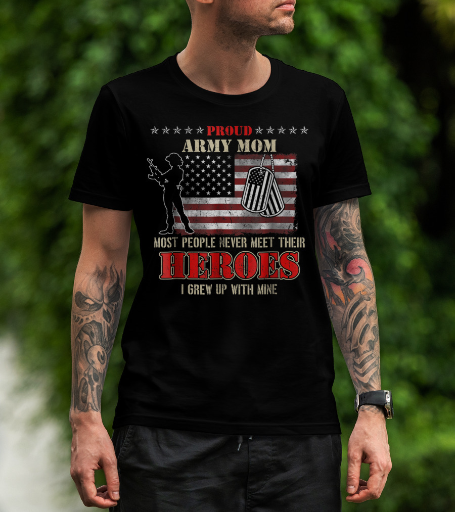 The Proud Army Mom Most People Never Meet Their Heroes I Grew Up With Mine US Military S97 T-shirt is designed for everyday wear and a consistent fit. Fabric is pre-shrunk ring-spun cotton with durable stitching. See the size chart below for exact measurements.