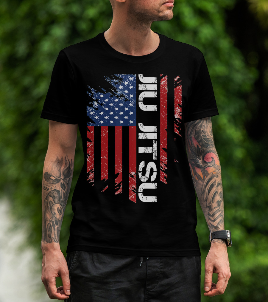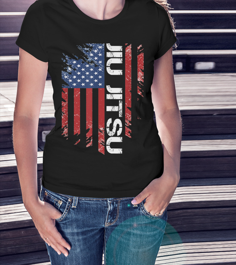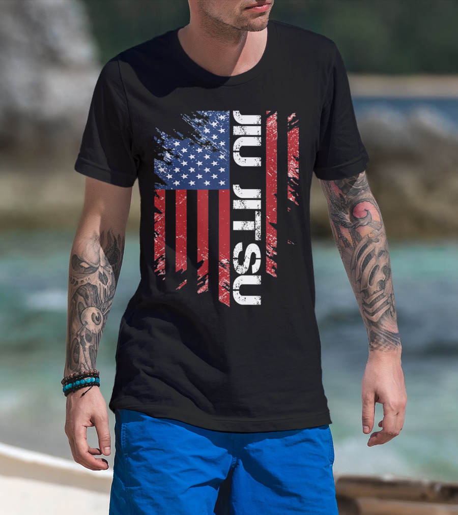 Vintage American USA Flag Jiu Jitsu T-Shirt