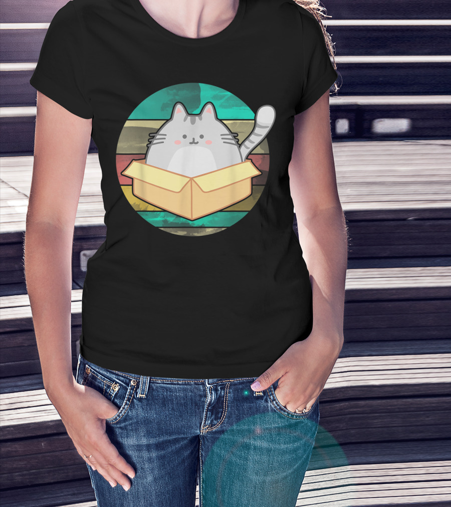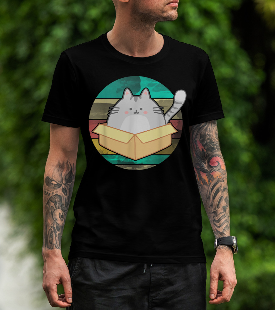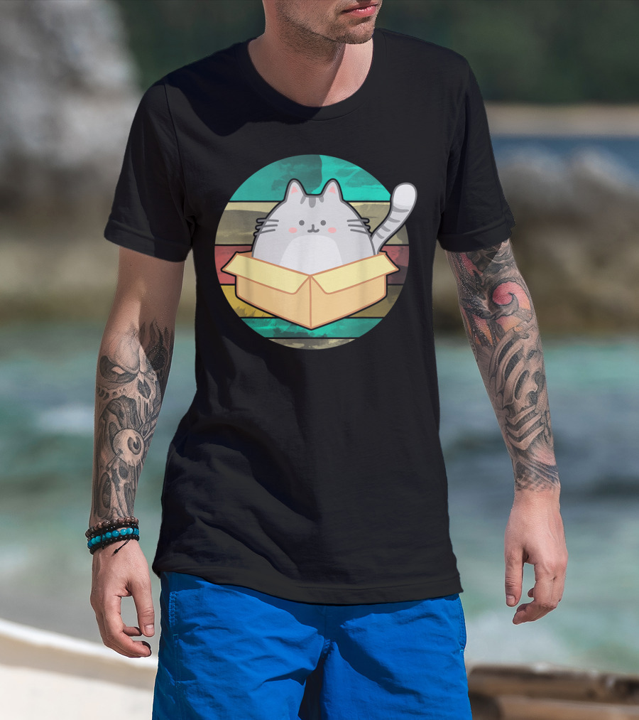 Retro Fat Cat In Box With Vintage Stripes T-Shirt