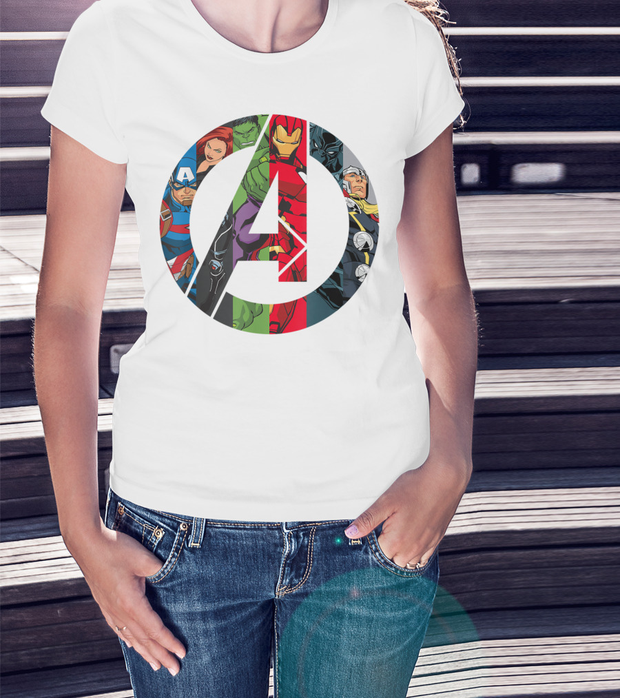 Avengers Assemble Icon With Captain America, Black Widow, Hulk, Iron Man, Black Panther, Thor T-Shirt