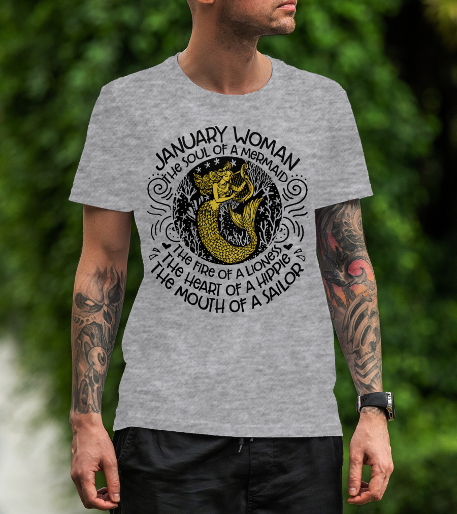 January Woman The Soul Of A Mermaid The Fire Of A Lioness The Heart Of A Hippie The Mouth Of A Sailor T-Shirt