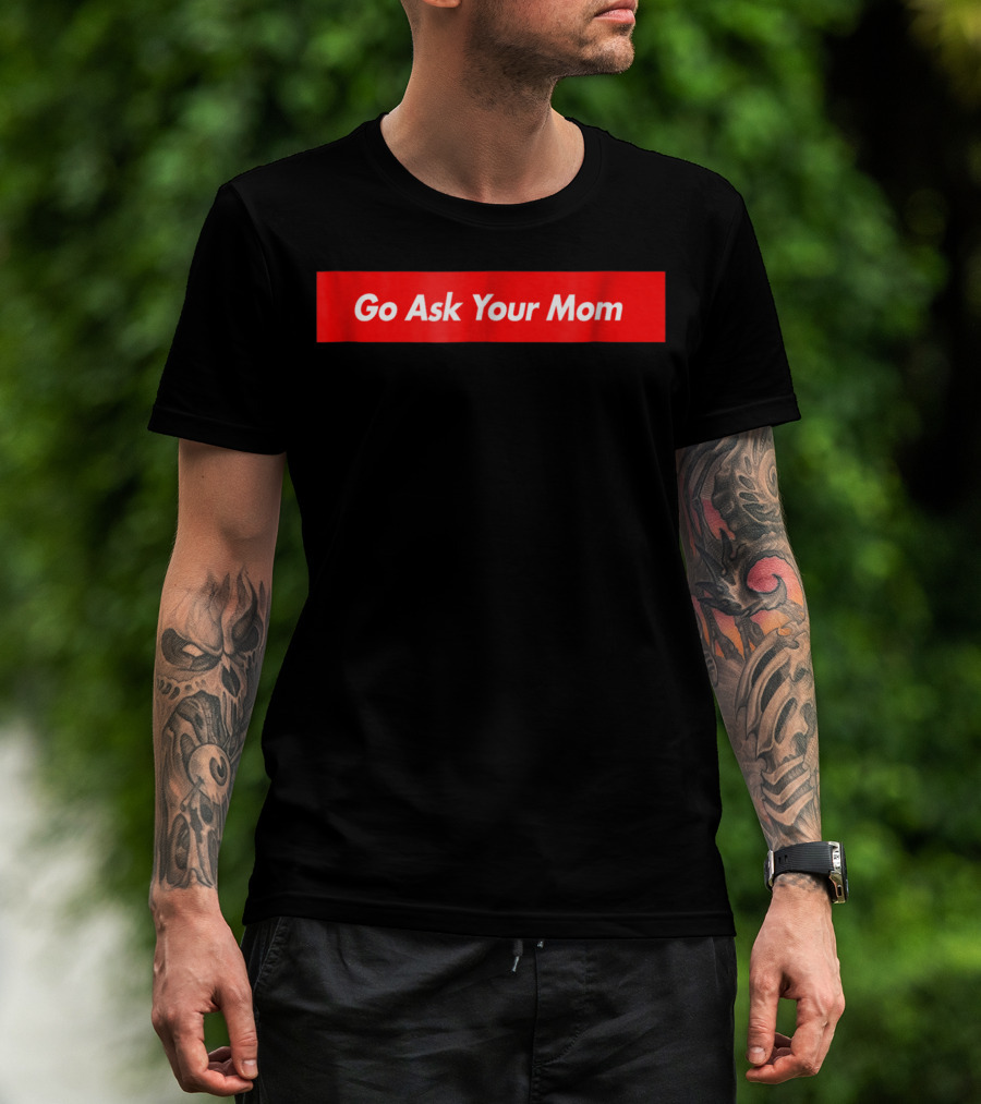 Go Ask Your Mom Red Box Logo Trendy Casual Wear T-Shirt